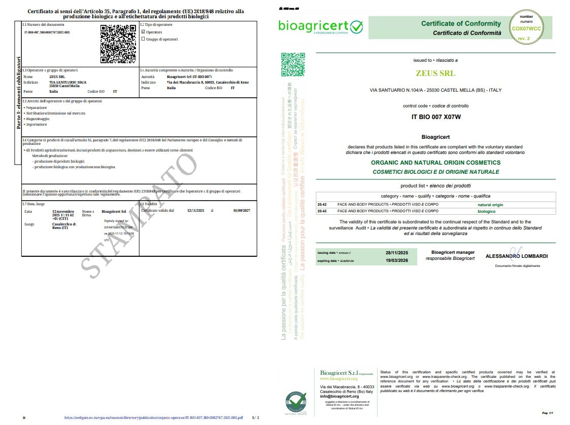 La certificazione è rilasciata da Bioagricert, organismo riconosciuto per il controllo e la validazione dei processi biologici.